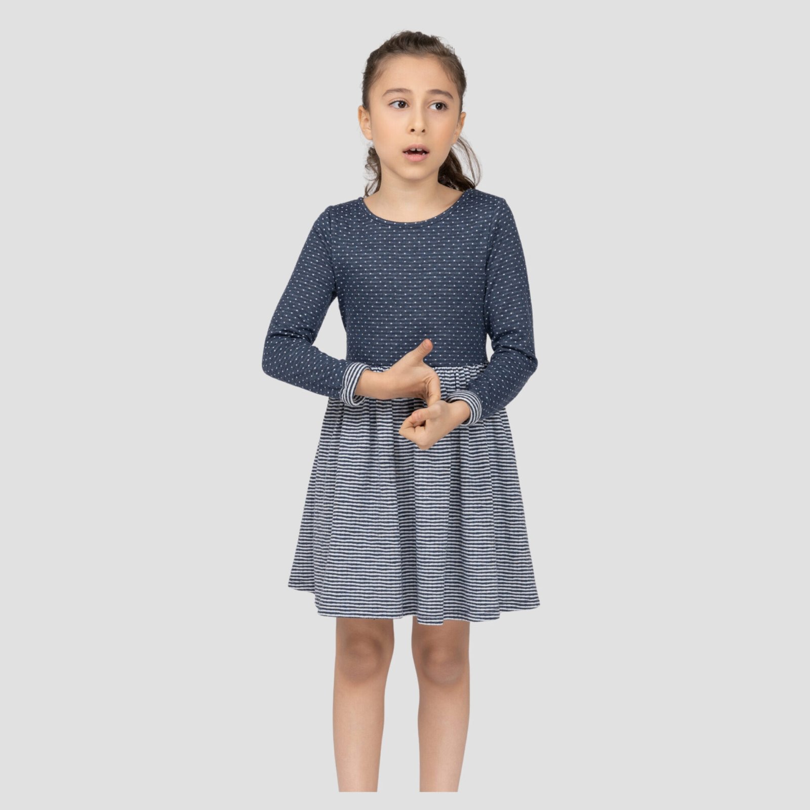 Keep your little one stylish and comfy with the Navy Charm Striped Skater Dress 💙👧.